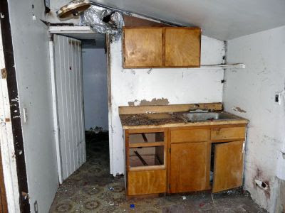 This house -- cheap, cheap, cheap! -- was found by Kandi, who writes: "We were going to get rid of all the cabinets, but then there would be no place for the range hood..." (She also points out that they have only one interior photo, and this is what they chose.)